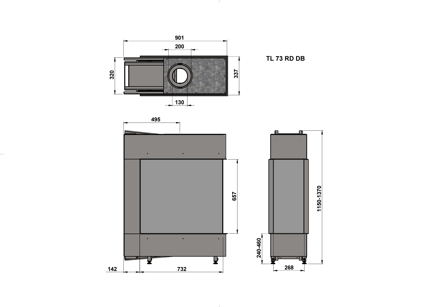 Standardversjonen av denne peisen har en brennerbase av trekubber og er utstyrt med dobbel brenner. Denne brenneren gir vakre, levende flammer, samtidig som varmeeffekten begrenses. Trimline 73 RD finnes også i tunnelversjon. I tillegg leveres den med Ecomax-fjernkontroll, og du kan velge å legge til WiFi-betjening med Trimline Fires-appen. Klikk her for å se alle tilpasningsmulighetene.
